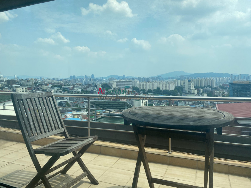 It has a killer view of Itaewon, Seoul.