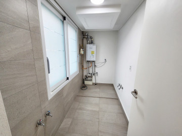 • Minimalist Vibe: Open-concept living with beautiful stone-texture flooring.